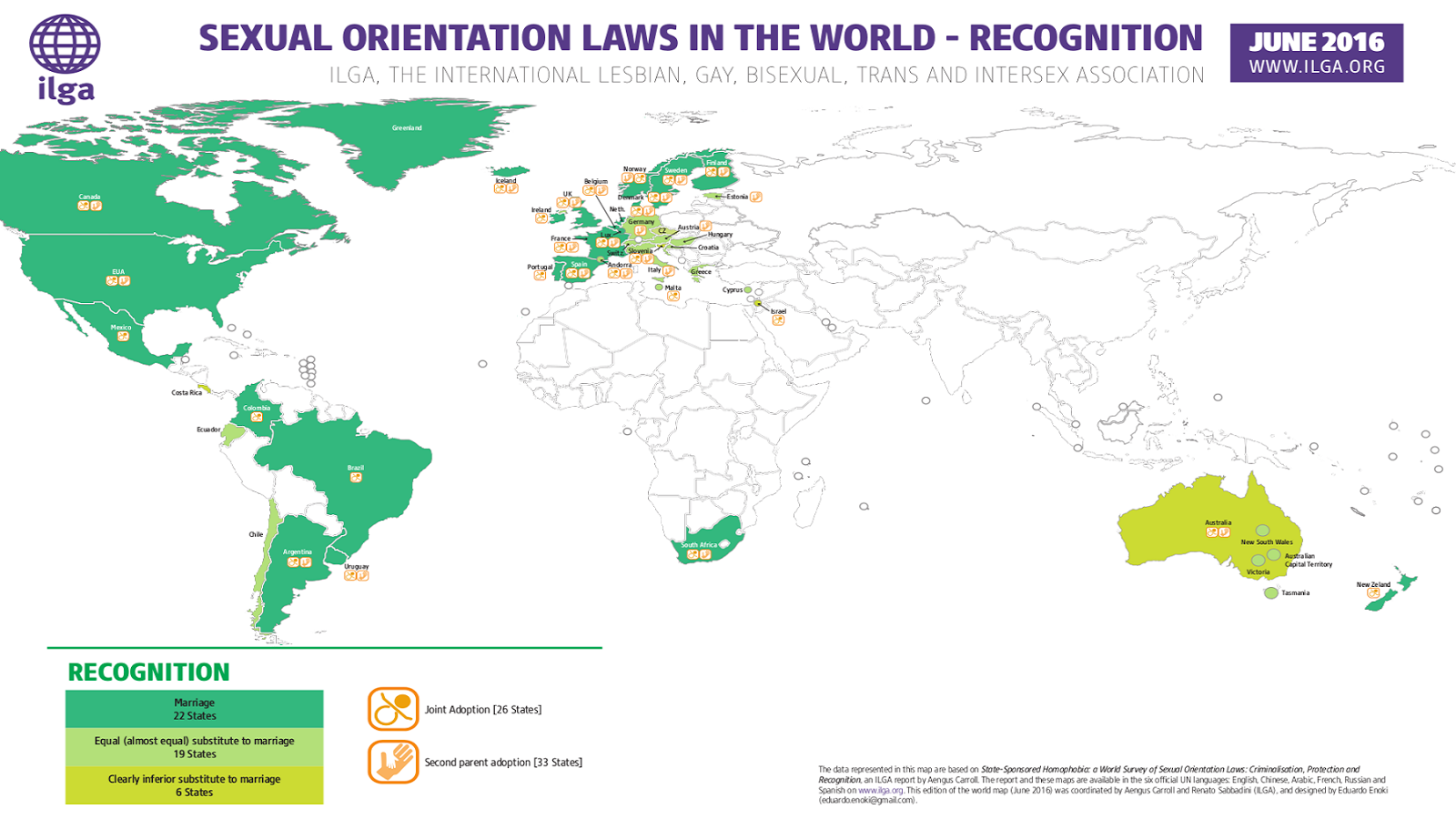 Na página Legislação sobre pessoas LGBT no mundo da Wikipedia, além de uma válida contextualização histórica e cultural, pode-se consultar uma tabela onde aparecem descriminadas as informações disponíveis relativamente aos direitos LGBTI aplicados em cada país do mundo.